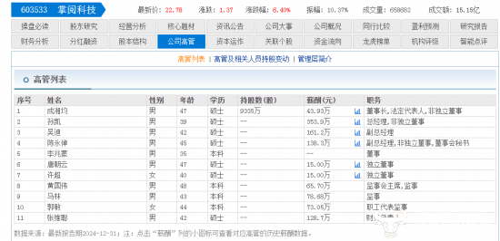 掌阅科技总经理孙凯待遇真好!2024年任期不到一年薪酬达353.93万