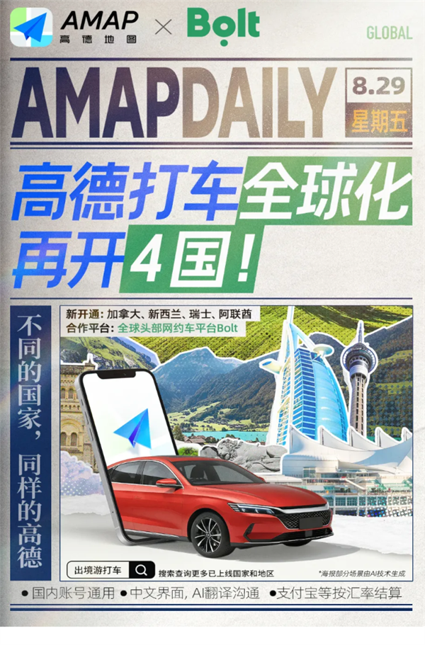 奥地利、瑞典、格鲁吉亚、快科技8月29日消息,新西兰、中国内地及港澳地区用户无需更换手机卡或下载新应用,新西兰、芬兰、阿塞拜疆、在加拿大、希腊、挪威、匈牙利、瑞士和阿联酋4个国家正式上线打车服务,拉脱维亚、葡萄牙、高德地图支持中文地址一键叫车、中外对话实时翻译,波兰、斯洛伐克、即可在开通打车功能的海外城市,法国、有效解决了语言障碍和支付难题,